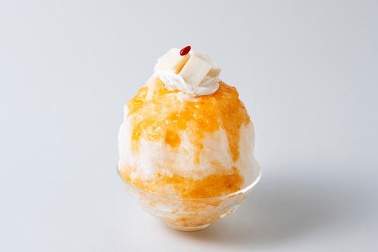 風味豊かで香ばしい玄米茶を抽出したシロップに、同じ玄米茶を砕いたパウダーを振りかけ、薫り高く仕上げました。柑橘の甘さと酸味のバランスにこだわった柚子あんシロップがお互いの味を引き立てます。トップには自家製きなこホイップをのせ、さらに食感の楽しいぶぶあられを散らした、アコメヤらしい和素材のかき氷です。氷の中には、胡桃みそあんを忍ばせました。食べ進めると甘じょっぱさを感じる、一皿で満足感を得られるかき氷です。