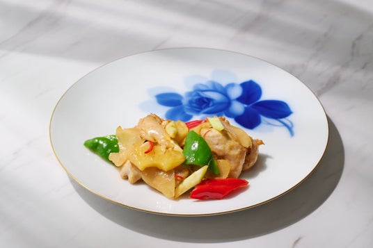 中国には『不時不食』という言葉があり、『時にあらざ れば食わず』という意味の孔子の言葉です。旬の時 期に採れた野菜や果物は生命力が高く、栄養素が豊富です。美容に嬉しい成分たっぷりのパイナップルと、食欲が進む新ショウガや鶏もも肉の炒め料理は、夏バテ予防におすすめの一品です。
