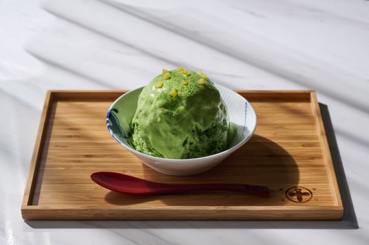 まるい形をした可愛いらしい氷の中に、「抹茶ゼリー」と「玉露アイス」を忍ばせ、上には抹茶みつと濃厚な抹茶栗クリームをたっぷりとかけた贅沢なかき氷。まると氷でしか味わうことができない「玉露アイス」など、この時期限定の一品をぜひご賞味ください。