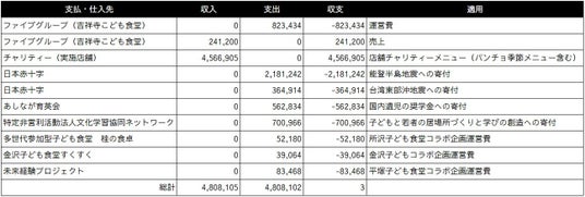 合計支出4,880,717円で3円を2024年活動へ繰り越しとさせていただきます。