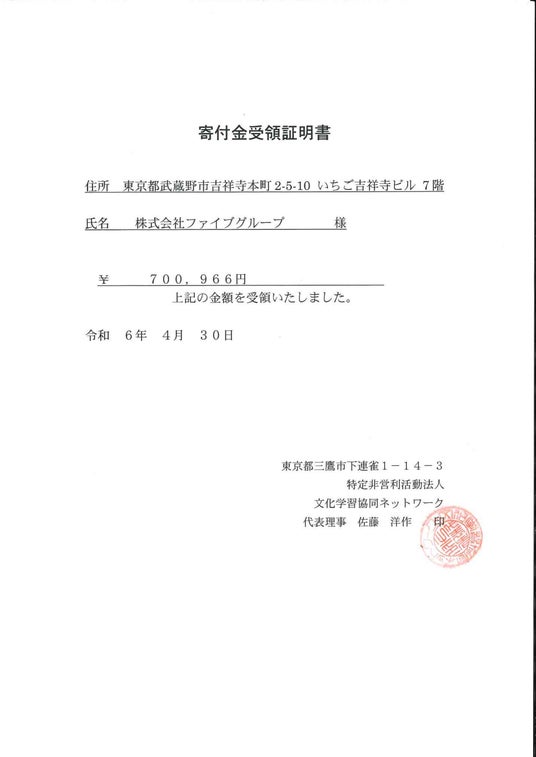 「"楽しい"でつながる世界をつくる」飲食企業である株式会社ファイブグループ(本社:東京都武蔵野市、代表取締役社長:坂本憲史、以下 ファイブグループ)は、運営する各飲食店にて「チャリティーメニュー」を設置し、これを原資として、お客様と共に地域への貢献活動を実施しています。2023年はチャリティーメニューを通じて450万円を超える活動へのご支援をいただき、子ども食堂活動の他、江ノ島でのビーチクリーン、各種寄付も含め、1年間で合計20回の地域貢献活動を実施することができました。