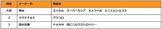 上半期の第2位は「 マクドナルド グラコロ」と第3位は「 森永乳業 PARM 杏仁ミルクストロベリー」がランクインしました。