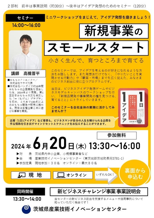 セミナー 『新規事業のスモールスタート~小さく生んで、育つところまで育てる~』