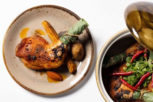 唐辛子をベースにした調味液で鶏もも肉をじっくりとマリネし、やさしい強火が自慢の石窯で香ばしくローストしました。味の染みたしっとりとジューシーな仕上がりに、ふわっと香るスパイスが食欲をそそります。グリル野菜は、三浦半島での野菜造りにこだわる青木農園から直送される夏野菜の旨みと甘みを引き出してご用意いたします。