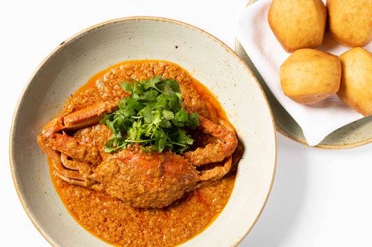 シンガポールを拠点とするPan Pacific Hotels Groupとの繋がりを活かし、料理長が現地のグループホテルの調理場で体得したレシピを日本向けにアレンジいたしました。ピリリと辛く、カニの旨味が染み出した濃厚なソースをよりお楽しみいただけるよう、揚げパンを一緒にご用意いたしますので、たっぷりと絡めてお楽しみください。