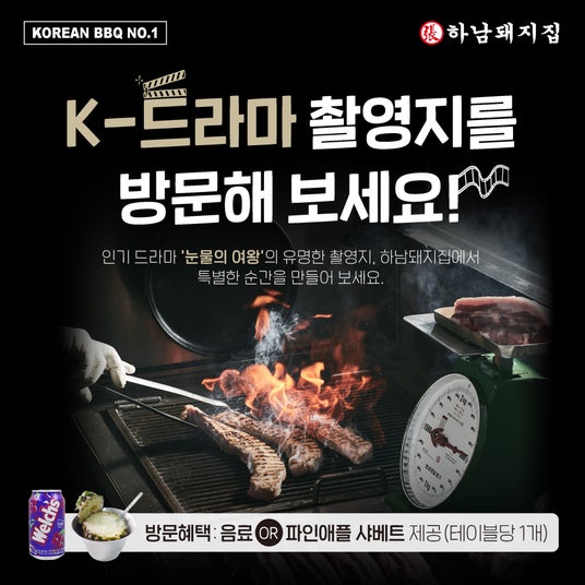 ドラマ聖地巡礼キャンペーン 韓国で300超の店舗数を誇るNo1プレミアムサムギョプサルブランドであるハナムデジジップは、この度大ヒット中のドラマ「涙の女王」「ワンダフルワールド」の舞台となったことを記念し、日本からの旅行者様向けに特別キャンペーンを実施いたします。