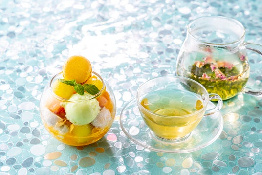 「メロン&マンゴーのパフェ」とヒルトン東京オリジナル花煎茶