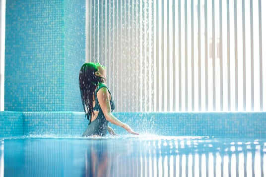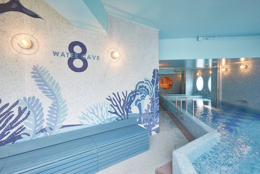 渡り廊下を抜けると水色の世界が広がる・・8 WATER CAVE swim suits spa