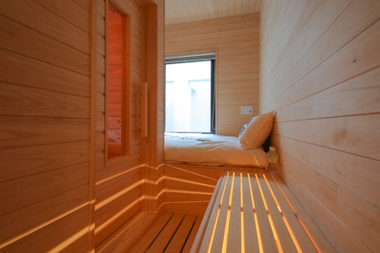 室内にセルフロウリュのできる本格フィンランド式サウナを併設した完全プライベート空間。サウナ好きの方はもちろん、友人やパートナーと、プライベートな空間で最大11時間も、サ活をお楽しみいただけます。ヒノキの香りに包まれるお部屋で、好きなだけととのい時間を満喫!