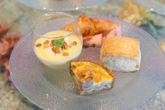 グラススイーツやタルト、果実感あふれるソルベやムースなど、目にも艶やかなスイーツをご用意しました。セイヴォリーには旬のとうもろこしを使った冷製ポタージュや全粒粉のスコーンをご用意。夏の午後を優雅に、そして涼やかに彩るアフタヌーンティーです。