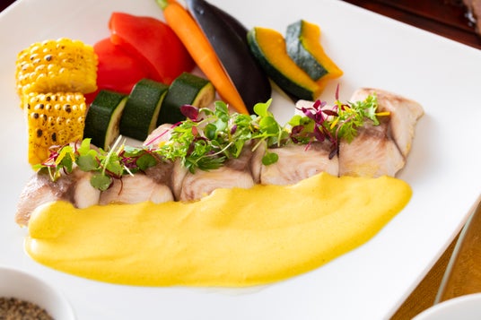 マヒマヒと夏野菜 カレー風味のクリームソース