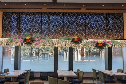 料理やスイーツはもちろん、店内にはヤシの木やハイビスカス、ブーゲンビリアなどの店内装飾を施し、スタッフはアロハシャツを着用してお迎えします。
