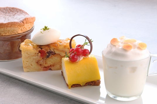 5.焼き立てのスフレ・デザートプレートをお召し上がりください。