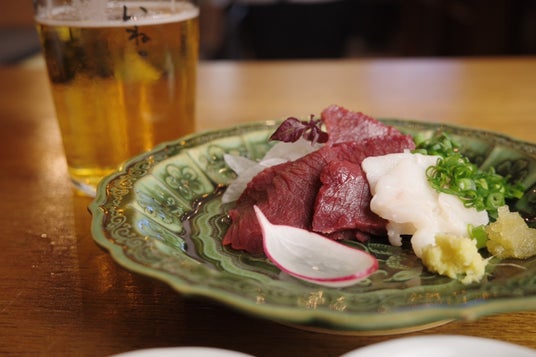 自慢の馬刺しは必食です。