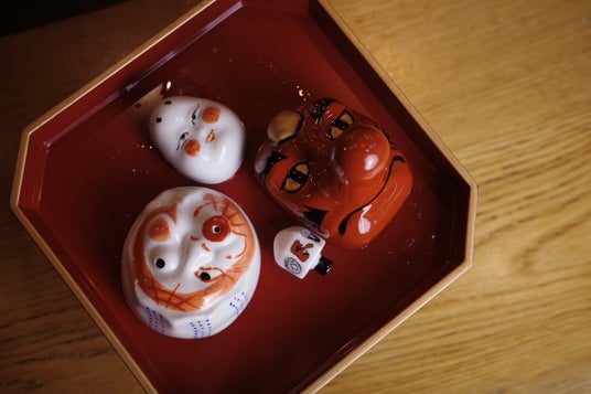 大正時代の木皿や明治時代の食器棚が並ぶ 雰囲気のある空間