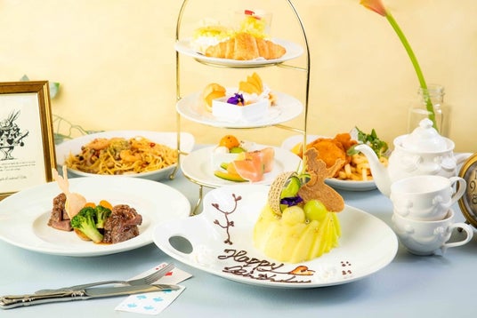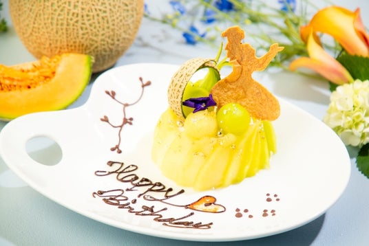 2つのアフタヌーンティープランには、歌っているかのようなアリスのドレスのフリルを、メロンで表したスペシャルな手作りケーキをデザートプレートとしてプラスすることができます。大切な方の記念日に、サプライズでメッセージを忍ばせる…そんな素敵な演出が、心に残る思い出の一コマに。