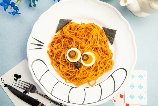 神出鬼没なチェシャ猫がお皿の上に!「チェシャ猫仕立てのラグーソースパスタ」は、牛肉、トマト、香味野菜の旨みが混然一体となった、定番でも飽きない美味しさ。