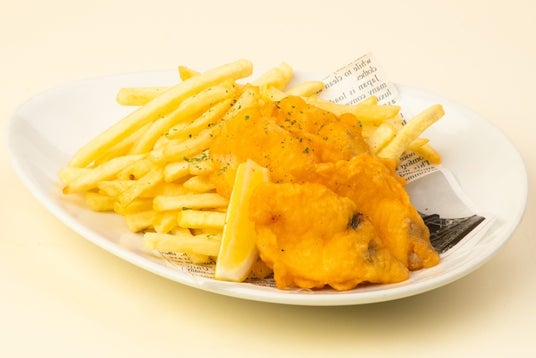物語の故郷・イギリス名物「フィッシュ&チップス」。サクサク衣の白身魚のフライ&ホクホクフライドポテトには、特製のタルタルソースをたっぷりつけるのがオススメです。