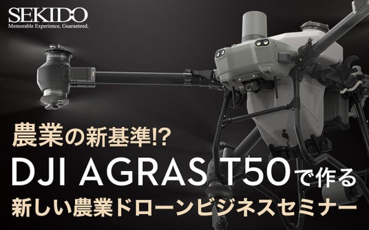 DJI(ディージェイアイ)正規販売代理店としてドローンビジネスの最先端を支える株式会社セキド(本社:東京都港区、代表取締役:大下貴之)では、2024年6月20日(木)より全国各地の会場にて、「DJI Agras T50 で作る新しい農業ドローンビジネスセミナー」を開催いたします。短時間に大容量を散布可能で、農業ドローンの新たなデファクトスタンダードとなる Agras T50(アグラス T50)による散布デモフライトを行う無料イベントで、圧倒的な散布能力や簡単な操作で実施できる自動航行による散布の手順がご覧いただけます。スマート農業への不安や疑問を解消し、導入のメリットが実感できる本イベントですが、さらに参加特典として、大型ドローン運用に便利な高出力発電機の25%OFFクーポンをプレゼントいたします。農業ドローンに興味がある方も長時間のドローン運用にお悩みの方も、ぜひこの機会にお気軽にご参加ください。