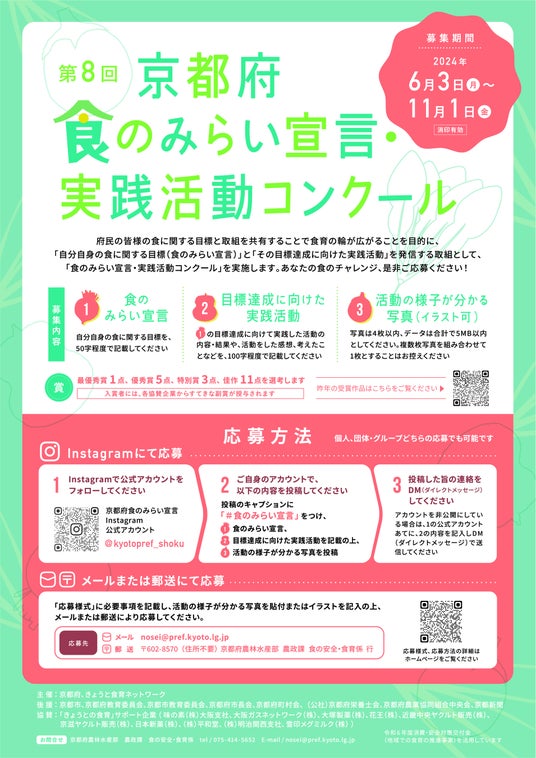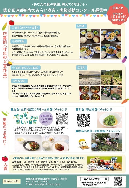 を目的に、「第8回京都府食のみらい宣言・実践活動コンクール」を実施します。