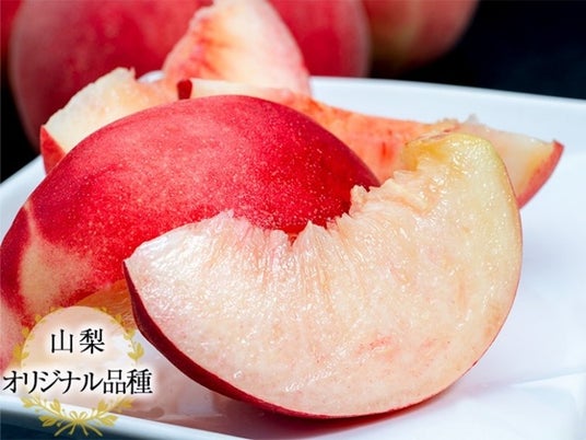 食味に優れる「浅間白桃」に着色に優れる「暁星」を掛け合わせて生まれました。果肉は乳白色。柔らかで果汁が多く、高糖度かつ酸味が少しあるので強い甘さを感じられます。山梨県の期待するオリジナル品種です。
