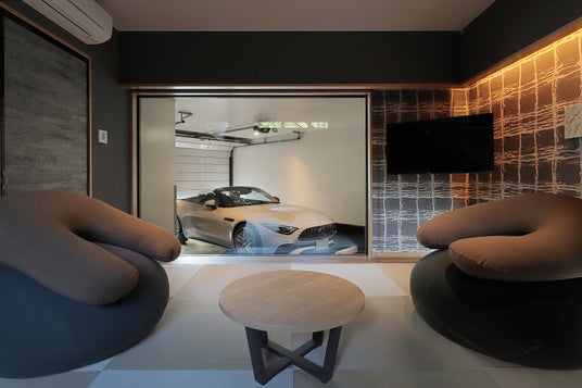 ■オーナー気分でリビングから愛車を眺める、邸宅スタイルのガレージハウス