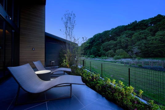 2Fの寝室から続く空間には、贅沢なまでの広さを誇る空の特等席“星見テラス”をご用意。これまで多くのお客様から感動の声を頂戴してきた当地、上塩原自慢の星空の美しさを、よりプライベート感たっぷりにお楽しみいただけます。星空観察用の天体望遠鏡は、お部屋にご用意しております。もちろん読書やお昼寝、サウナの“ととのい場” など、滞在中のアウトドアラウンジとしても活用自在です。