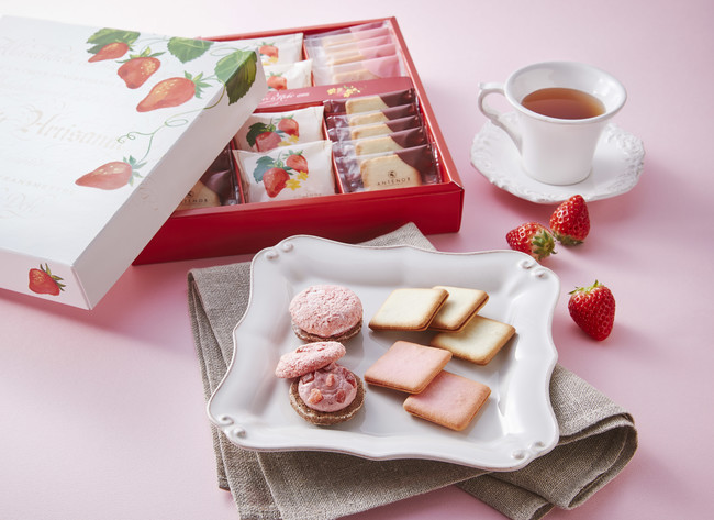 神戸生まれのパティスリー【アンテノール(https://www.antenor.jp)】は、2 月 15 日より苺の焼き菓子を販売いたします。ほんのり甘酸っぱい苺果肉入りの苺チョコクリームをふうわり食感の苺とショコラのダックワーズ生地でサンドした「苺のクリームサンド」の詰め合わせギフトや、ほんのり甘酸っぱい苺チョコレートをサンドした「苺のラング・ド・シャ・ショコラ」が今年も登場いたします。淡いピンク色にきらりと輝く苺と可憐な黄色のフリージアを描いた春を感じるパッケージに、苺の美味しさを詰めました。ホワイトデーの贈り物や春のご挨拶におすすめです。
