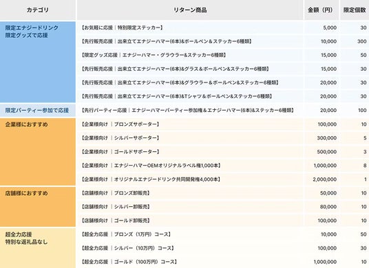 ・初回限定エナジードリンクの製造代