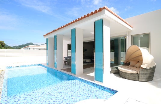 ヴィラ: 全5棟のヴィラは、広々としたプライベートスペースを有し、専用プール、テラス、3部屋のベッドルーム、カラオケ設備(2棟のみ)を完備しています。