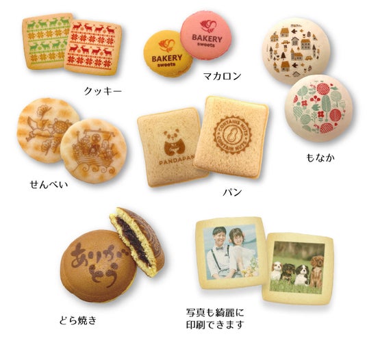 「NE-55MACH」は、クッキー、マカロン、せんべい等のお菓子やパンはもちろん、どら焼きやお饅頭、玉子焼きや蒲鉾などの滲みやすい食品にもプリントすることが可能です。フードプリントの技術は、嚥下食、介護食の分野での注目も高まっています。