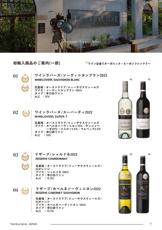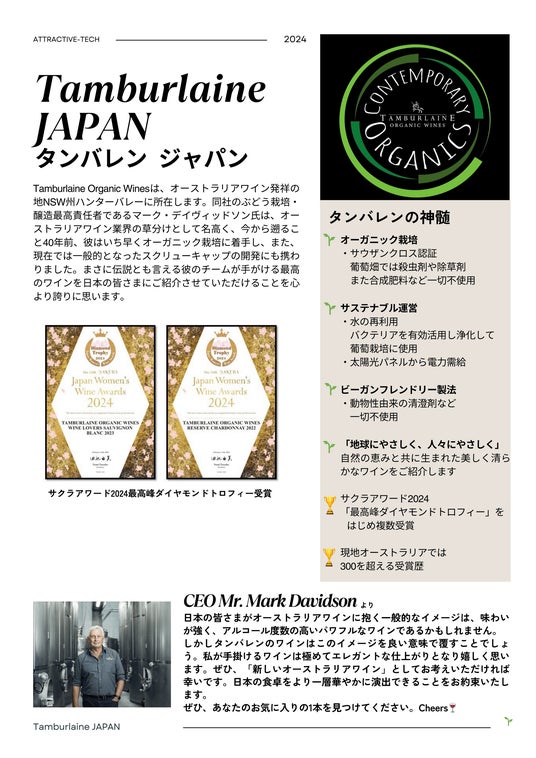オーストラリアワイン界のパイオニアであるMark Davidson氏が手掛けるTamburlaine Organic Winesタンバレンオーガニックワインの日本輸入総代理店Tamburlaine JAPAN タンバレン・ジャパンとして輸入販売を開始いたします。また2024年6月18日(火)より、オフィシャルECサイト「Tamburlaine JAPAN」https://at.tamburlaine-japan.shop/を
