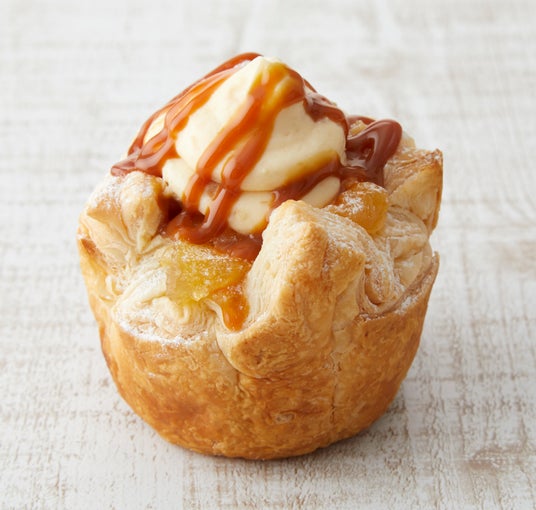 甘じょっぱくてクセになる味わいの“塩スイーツ”が登場!国産ふじりんごとカスタードクリームを包んだアップルカップと、キャラメルの甘さのなかに塩味をほんのり加えた 塩キャラメルクリームの組み合わせは、すっきりとした味わいで 夏におすすめの逸品。王冠を思わせるカタチで、小ぶりなのに手に取ると“ずっしり感”があり、手土産や自分へのご褒美におすすめ。ジューシーな国産りんごと、ほろほろと口どけるパイ生地、クリームが織りなすマリアージュをお楽しみいただけます。