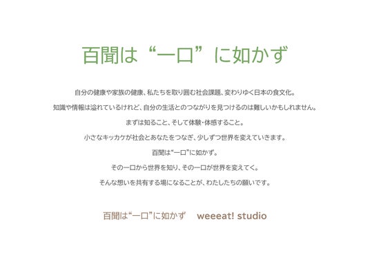 「weeeat! studio」のコンセプトは「百聞は“一口”にしかず」です。