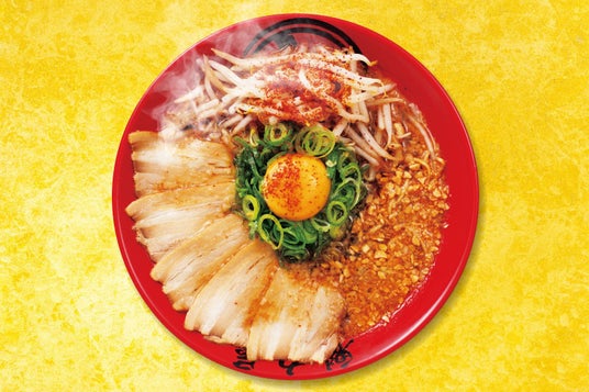 真夏日が増え夏バテに陥りがちなこの時期に、暑さに打ち勝つスタミナ満点な商品が新登場!フライドガーリックと背脂がたっぷり入った醤油ベースの旨辛スープは、辛さの中に豚バラチャーシューの旨味と卵黄のマイルドさが絡み合い、やみつき必至!!
