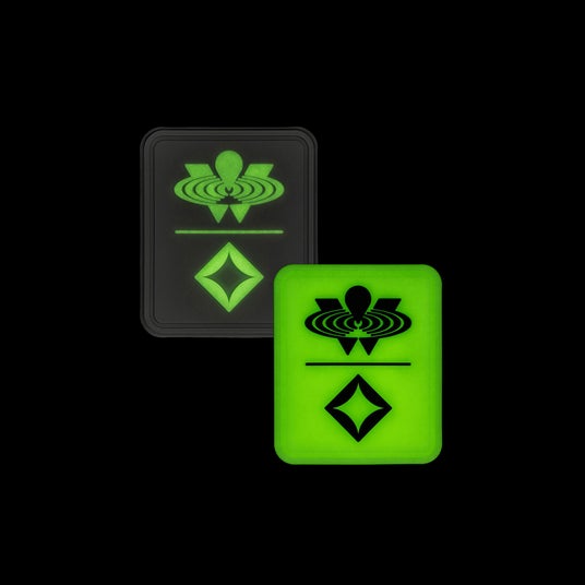 暗い夜にも明るく光る蓄光材質で作られており、蓄光部分が異なる2種類のパッチがセットになった商品。チェアやテーブルなどに貼り付けできる便利な商品です。タクティカルシリーズのチェアやテーブルのベルクロ部分などに取り付けてご使用ください。