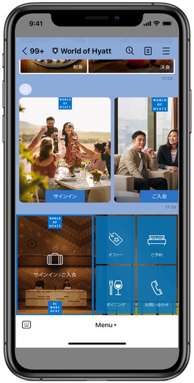 - ワールド オブ ハイアットへの入会: ハイアットLINE公式アカウントからもワールド オブ ハイアットへの入会が可能。ワールド オブ ハイアット会員のお客様は会員ID連携後、ポイント情報のチェックや利用も可能になります。