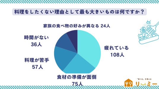 「疲れている」と答えた人が最も多く、その次に「食材の準備が面倒」という回答が多いことから、料理を避ける主な理由が、体力的・精神的な疲労感や準備の手間にあることが明らかです。