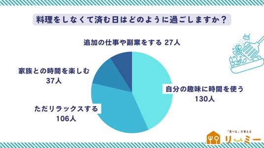 料理から一時的に解放されると、多くの人が趣味の時間を楽しんだり、リラックスする選択をしています。これは、日々の料理が個人の自由時間やリラクゼーションにどれだけ大きな影響を与えているかを示しています。