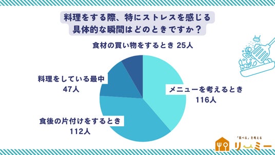 「メニューを考える時」と「食後の片付けをする時」が料理において特にストレスを感じる瞬間として多くの人に挙げられています。