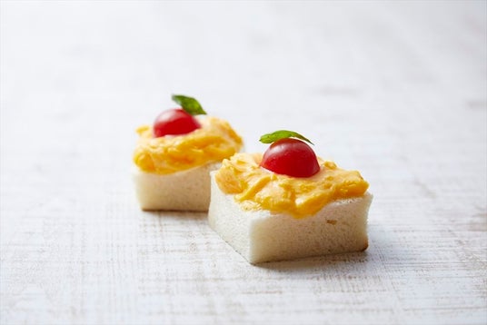 物語に登場する双子の兄弟「ダムとディー」をイメージしたスクランブルエッグとトマトが色鮮やかなオープンサンド。