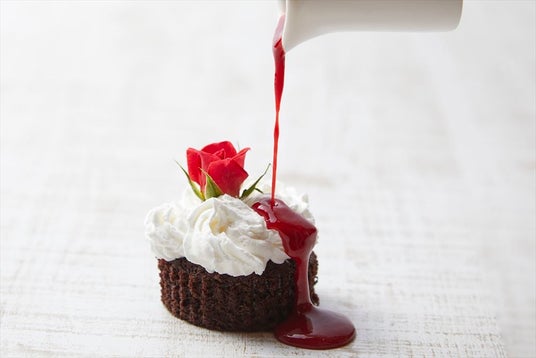 女王様の大好きな赤いバラがポイントのガトーショコラ。甘酸っぱいフランボワーズソースをかけて召し上がれ。
