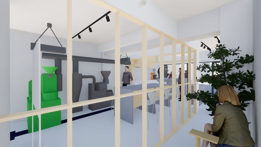 セミナールーム機能も備える焙煎室兼作業部屋はガラス張りとなっており作業の様子を見ることができる