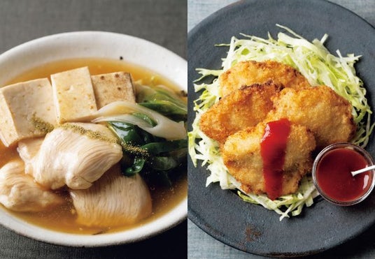 「鶏の治部煮風」と「塩こうじチキンカツ 梅ソース」