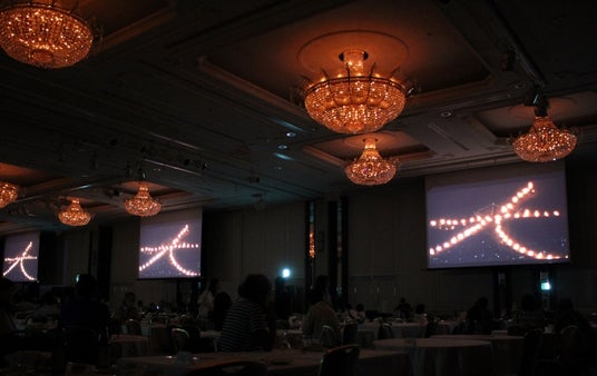 宴会場内に投影された「送り火」映像(2018年開催風景)