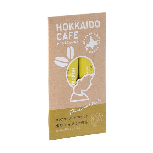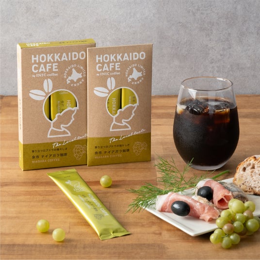 余市町で愛されるブドウの酸味と香りが際だつ上品さを感じるコーヒーで、ワインのようにチーズと合わせても美味しく楽しめます。スティック1本分のパウダーをカップに入れ、約85℃のお湯を注ぐだけの手軽さはINIC coffeeのままです。ドリッパーなど専用器具がなくてもかんたんに淹れることができるため、お土産やギフトにも利用しやすいことが特徴です。コーヒーが好きな方はもちろん、ワイン好きの人へのお土産としても喜ばれる商品です。