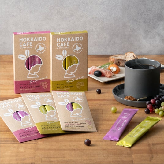 パウダーフーズフォレスト株式会社(本社:愛知県名古屋市名東区、代表取締役 社長 CEO:森永 照久)は、パウダーコーヒーブランド「INIC coffee(イニックコーヒー)」の北海道限定商品「HOKKAIDO CAFE」シリーズの新商品として、余市町で採れたブドウを使ったコーヒー「余市ピノ・ノワール珈琲」「余市ナイアガラ珈琲」、両商品が1袋ずつ入った「アソート2Cups」を、6月中旬から順次販売を開始します。