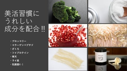 ● ザクロ、ライ麦、ブロッコリー、ソイプロテイン、寒天、コラーゲンペプチドなどの美活習慣に嬉しい成分を配合