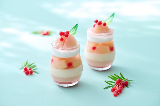 赤桃や白桃などを、ソース、ゼリー、ムースといった様々な層で楽しめる、旬の桃づくしのグラスデザートです。甘くてみずみずしい桃の果肉も贅沢に使い、最後の一口までお楽しみいただける一品に仕上げました。