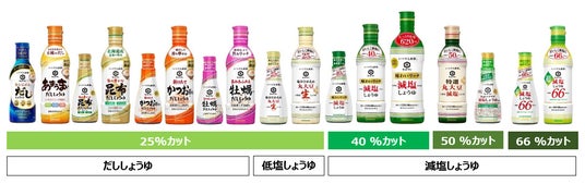 また、食塩分を25%カットした「いつでも新鮮 塩分ひかえめ丸大豆生しょうゆ」や、同じく食塩分を25%カットした「いつでも新鮮(R) だししょうゆ」シリーズなど、さまざまな減塩・節塩ニーズにお応えする商品を販売しています。